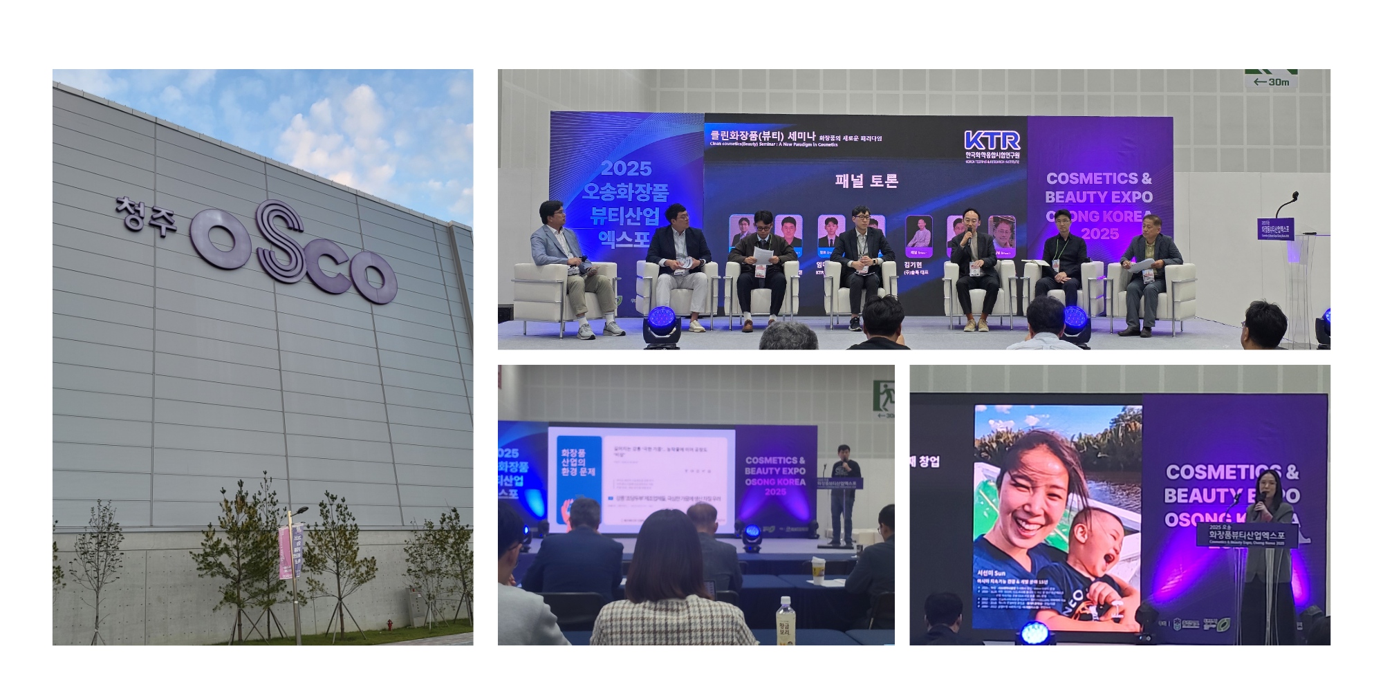 패널토의에는 KTR을 비롯하여 충북대학교 박준성 교수, 바디야건강 이혁 대표, 연우 이태수 팀장, 슬록 김기현 대표 등 학계와 업계 전문가들이 함께했습니다. 참석자들은 모두 K-클린뷰티 단체표준 및 인증제 도입이 산업 발전의 기폭제가 될 것이라는 기대감과 함께, “PPWR 등 국제 기준과의 호환성 확보”, “초기 기업의 부담을 덜어주는 유연한 심사체계 필요” 등 현실적인 과제에 대해서도 언급했습니다.