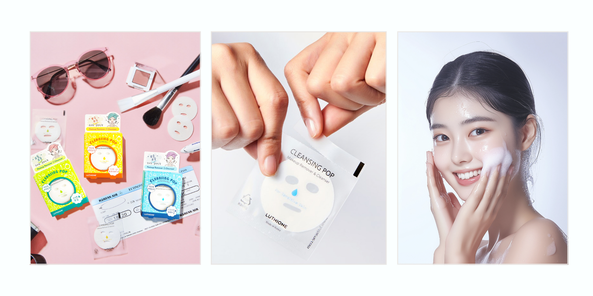 AEROFOAM은 액상 형태의 세정제를 발포 및 고체화(고형화)하여, 물과 접촉하면 사르르 녹으며 풍부한 거품이 형성되는 차세대 위생 세정 기술. 액상제품을 시트 형태로 고형화하니 내용물과 포장재를 획기적으로 경량화할 수 있어요. 포장재는 약 90% 줄일 수 있고, 물류비용 절약되고, 누액이나 파손의 위험도 없고, 1회 사용량 고정으로 낭비도 없어요. 외출, 출장, 레저활동시 주머니에 쏙 넣고 다니면 되니 휴대성, 편리성도 극강이에요. 폼클렌저·샴푸·바디워시 같은 뷰티 제품은 물론