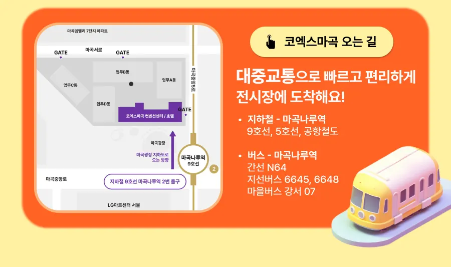 서울역에서 19분, 신논현역에서 34분. 마곡나루역 바로 연결, 첨단 인프라의 코엑스 마곡입니다. "마곡은 멀어서…" 하셨던 분들, 생각보다 가깝습니다. 매일 마곡으로 출근하는 저희가 보증합니다. 마곡이 처음이시라면 근처 서울식물원, 원그로브 몰도 함께 보시면 즐거운 시간이 되실 것 같습니다.